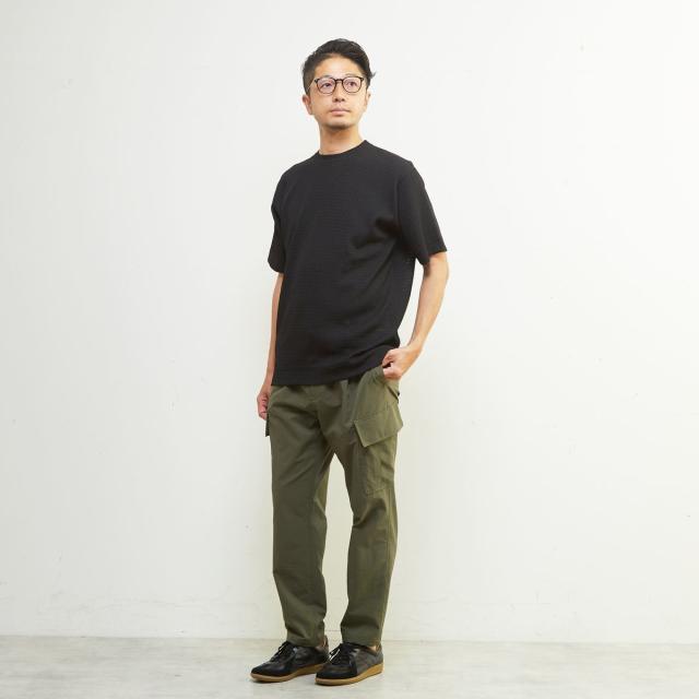 圧倒的清涼感とニットライクなドレープ感を併せ持ったレース編みメッシュのクルーネックTシャツ。
