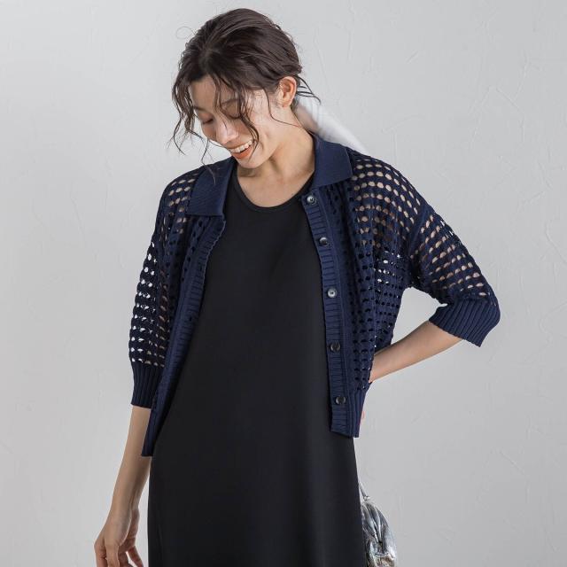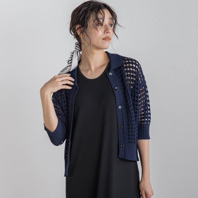 ざっくりとしたメッシュに今シーズンらしいポロ衿のデザインがトレンド感のあるニット。