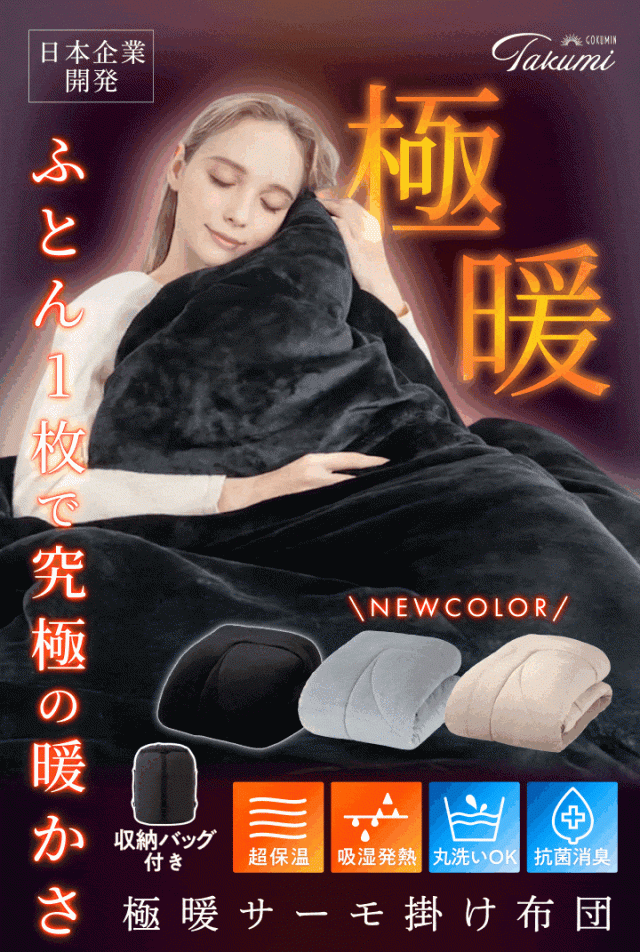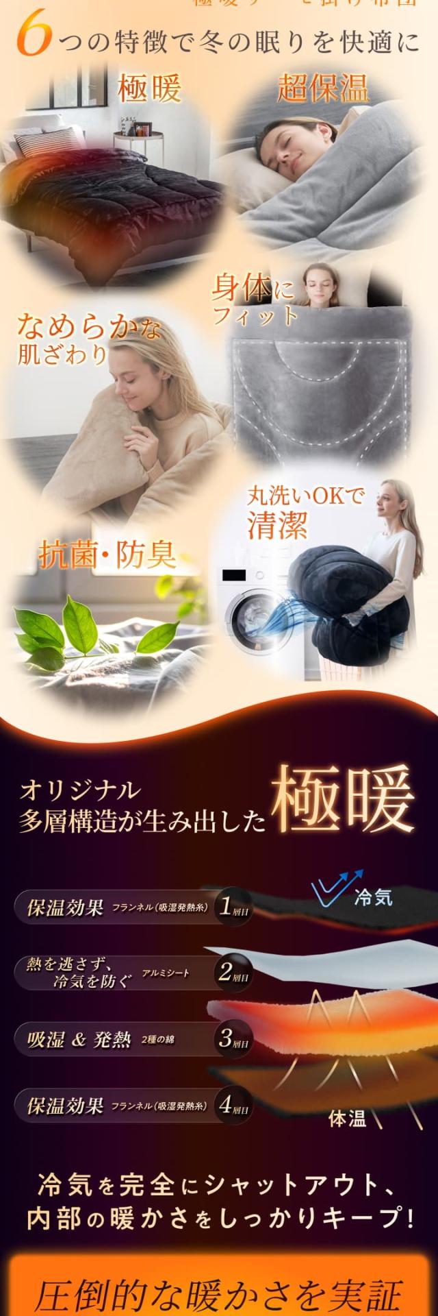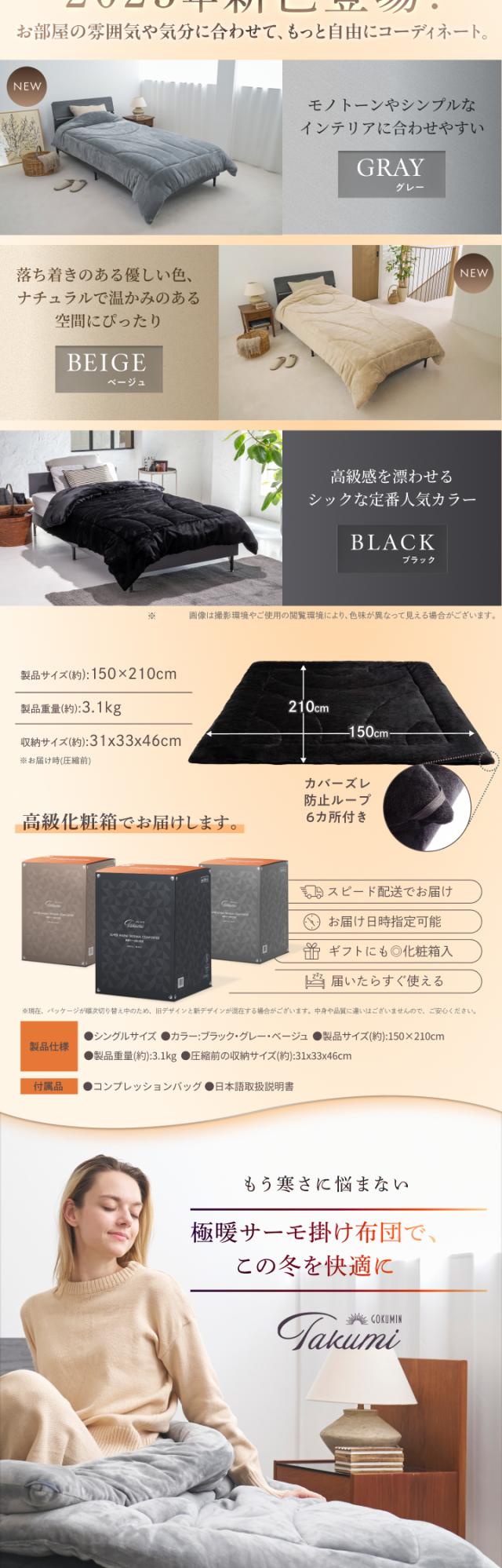 GOKUMIN 冬用掛け布団 かけ布団 毛布 暖かい 蓄熱 吸湿発熱 高保温 断熱材 4層構造 アルミシート 通気性 蒸れない 洗濯可能 洗える 洗濯機 丸洗い 収納 軽量 軽い 抗菌 消臭 静電気防止 清潔 柔らかい 肌触り コンパクト フランネル マイクロファイバー シングル ブラック