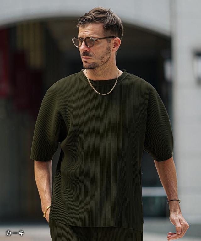 Tシャツ メンズ 半袖 プリーツ トップス メンズ 半袖Tシャツ メンズ オーバーサイズ 新作 夏 オラオラ系 お兄系 ちょい悪 リゾート メンズファッション