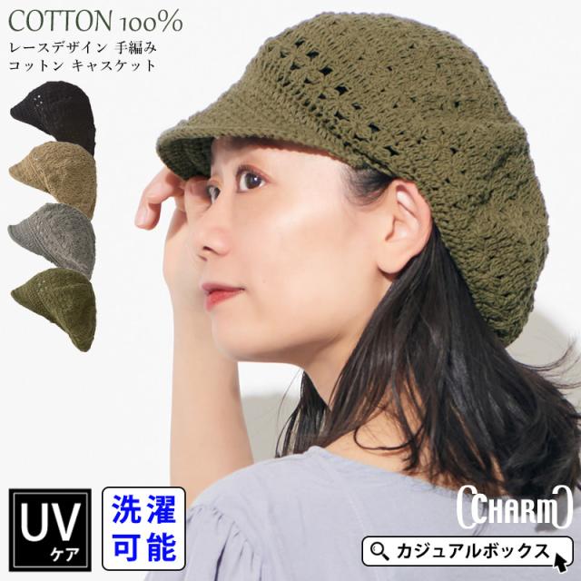 レディース オールシーズン 春 夏 春夏 春用 夏用 綿100% 帽子 キャップ クロッシェ 日よけ帽子 日除け帽子 つば広帽子 つば付き帽子 日焼け防止 紫外線対策 おしゃれ かわいい ハンドメイド | CHARM レースデザイン 手編み コットン キャスケット ca-rsh