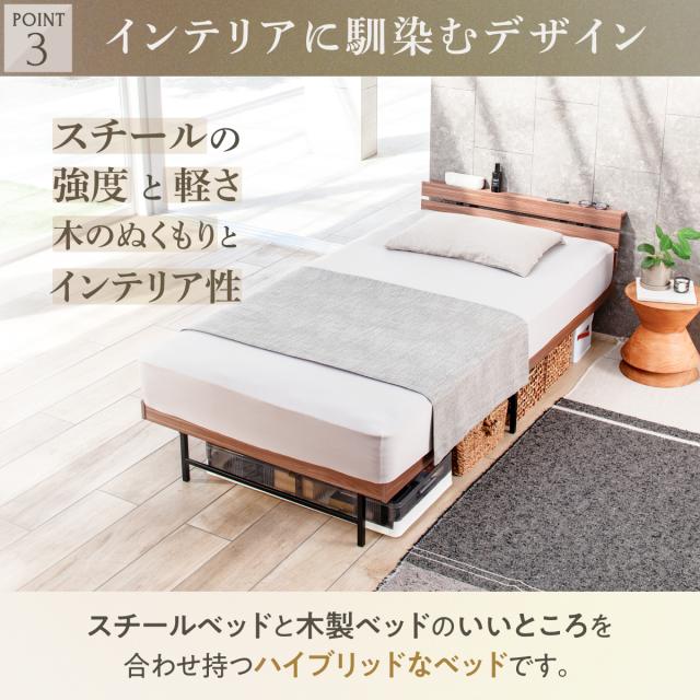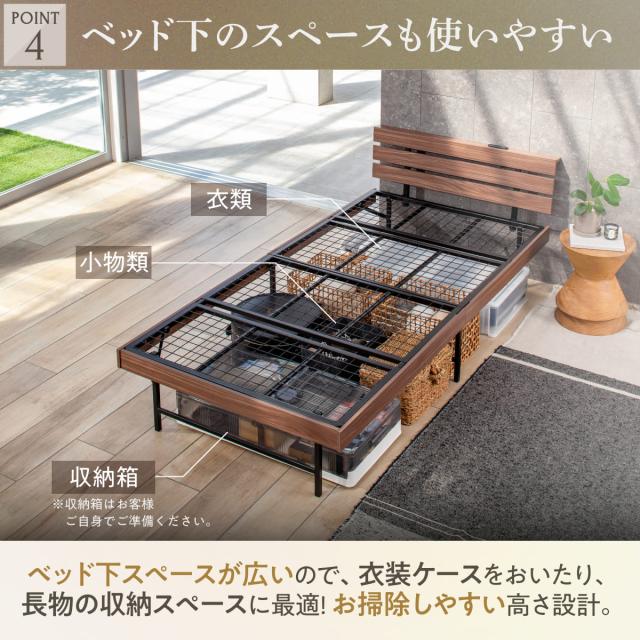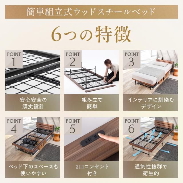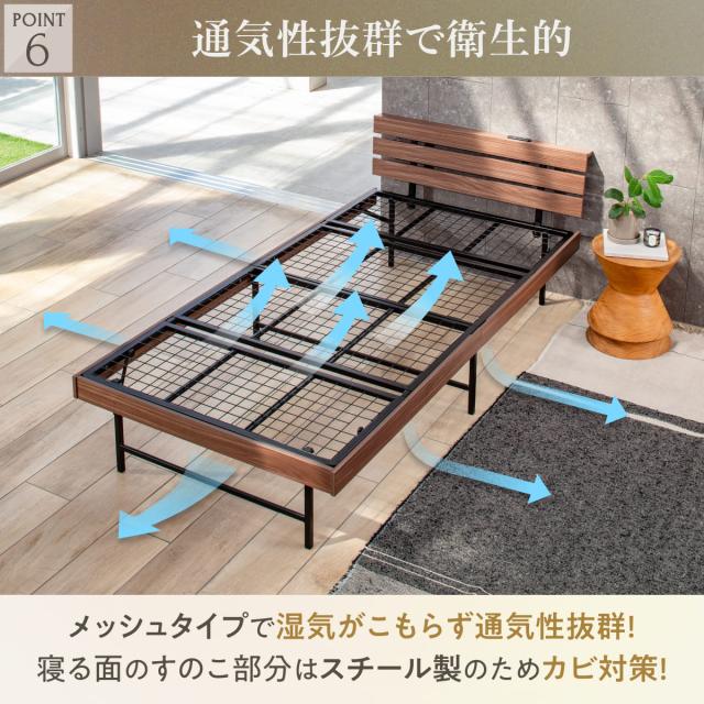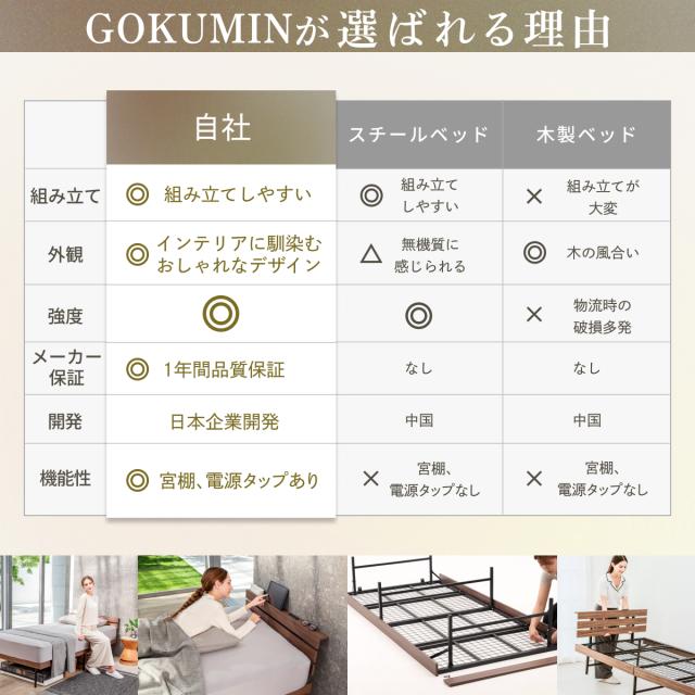 GOKUMIN シングルベッド フレーム ベッドフレーム スチールベッド 木製ベッド Sサイズ シングル ベッド メッシュ ハイタイプ 頑丈 軽量 シンプル 宮棚 きしまない ウォールナット 簡単組立 耐荷重120kg 通気性 おしゃれ コンパクト 工具付き コンセント付き パイプベッド