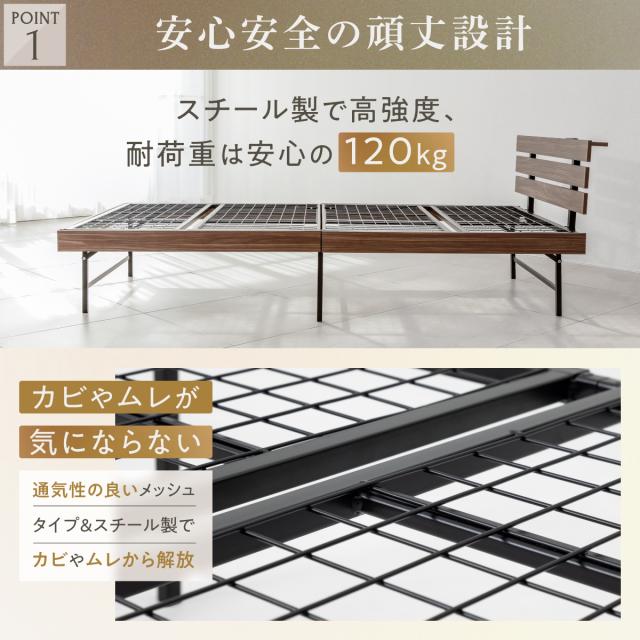 8cm以上の薄型マットレスや敷布団も支えるメッシュ床板で、快適な寝心地を提供。隙間に落ちる心配もなく、安心して使えます。