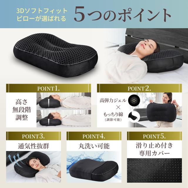 GOKUMIN ジェル枕 ジェルピロー まくら TPE 快眠 柔らかめ 高さ調整 無段階 通気性 寝返り 仰向き寝 横向き寝 体圧分散 丸洗い 洗濯可能 洗える 軽量 清潔 柔らかい tpeストレートネック ブラック ギフト プレゼント