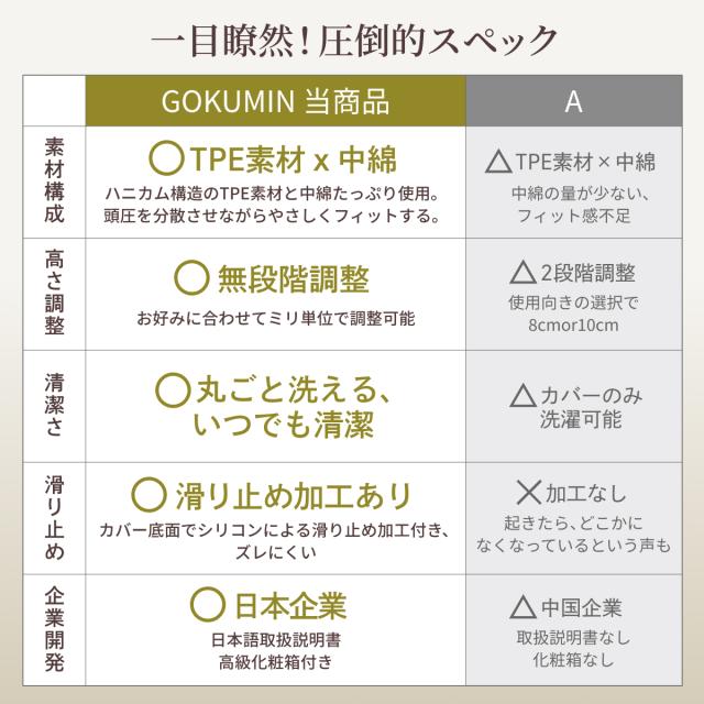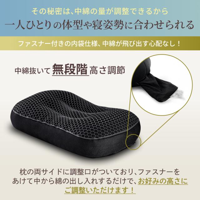 中綿の量を調整することで、あらゆる体型や睡眠スタイルに対応し、ぴったりの高さが見つかります