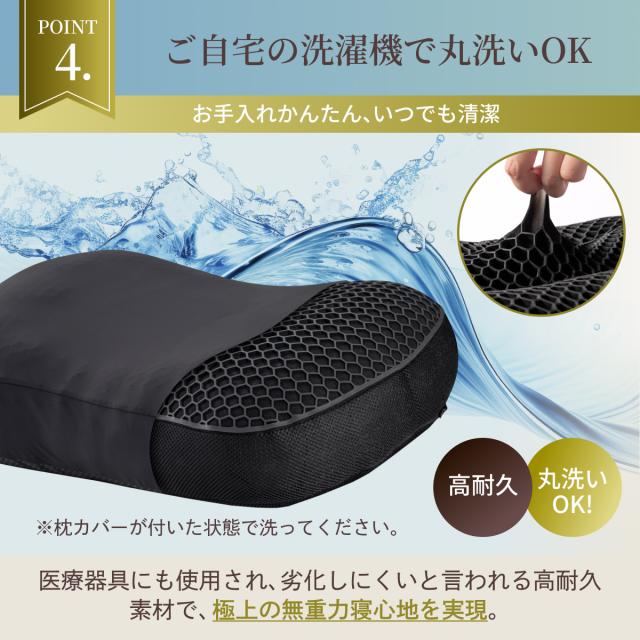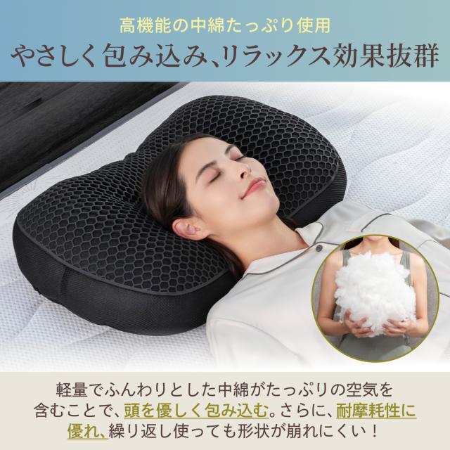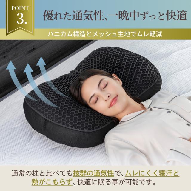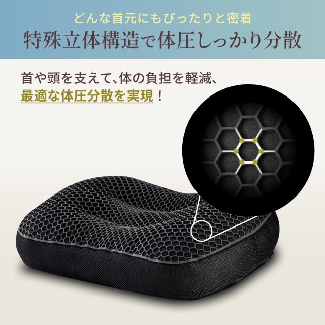 ジェルの特殊構造とメッシュ生地を採用。通気性がよく長時間使用しても蒸れにくいため、季節を問わず快適な眠りをサポート