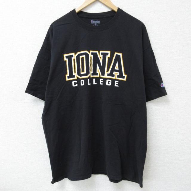 古着 チャンピオン champion 半袖 ブランド Tシャツ メンズ ビッグロゴ 大きいサイズ クルーネック 黒 ブラック XLサイズ 中古 中古 古着