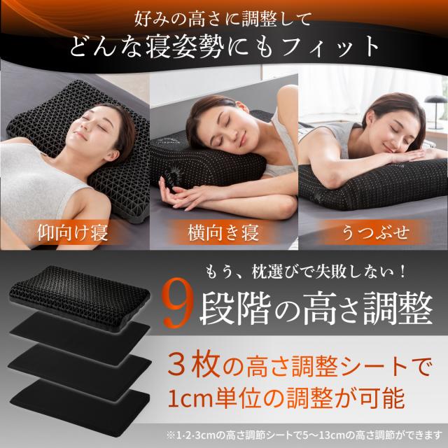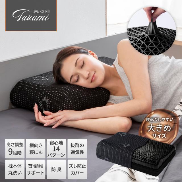GOKUMIN 枕 低反発 高反発 まくら 高級カバー付き 高さ調整可能 首が痛くならない まくら 丸洗いOK 安眠枕 快眠枕 横向き枕 仰向け対応 いびき対策 肩がラク 寝返り 整体師監修 通気性 ジェル枕 高級 ブラック