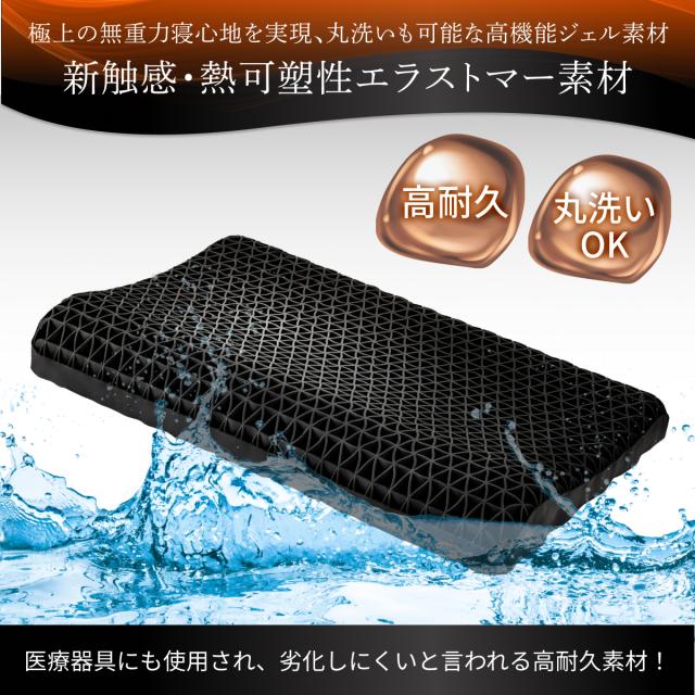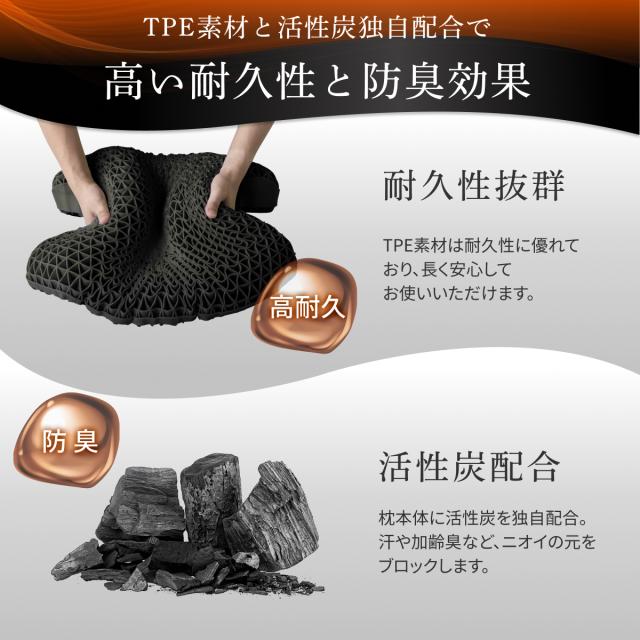 本体は医療器具にも使用されるTPE (熱可塑性エラストマー) 素材を使用。丈夫で柔らかく、しなやかな弾力性が特徴の枕です。