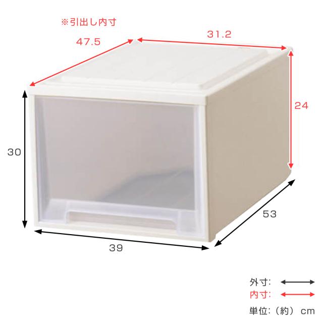 | サイズ | 約 幅39×奥行53×高さ30(cm) 引出内寸:約 幅31.2×奥行47.5×高さ24(cm) |