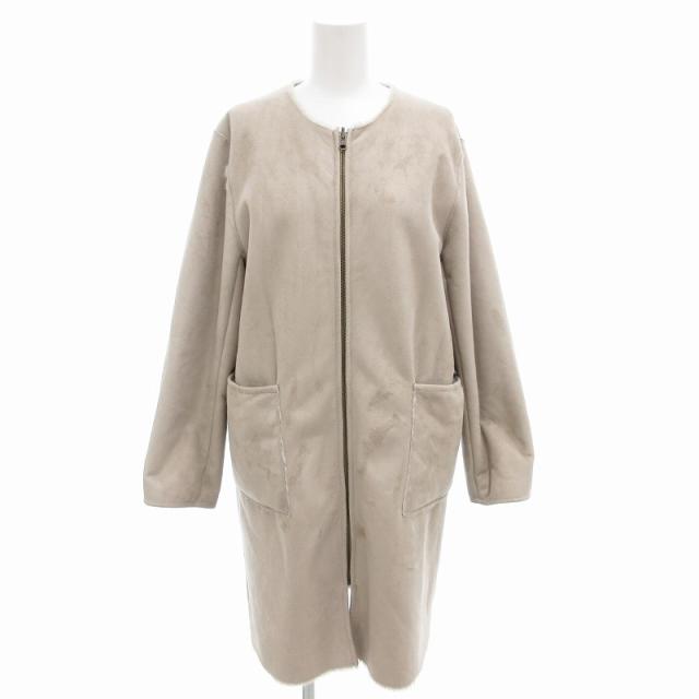 【中古】ビームスハート BEAMS HEART フェイクスエードリバーシブルコート ノーカラー ひざ丈 M グレー
