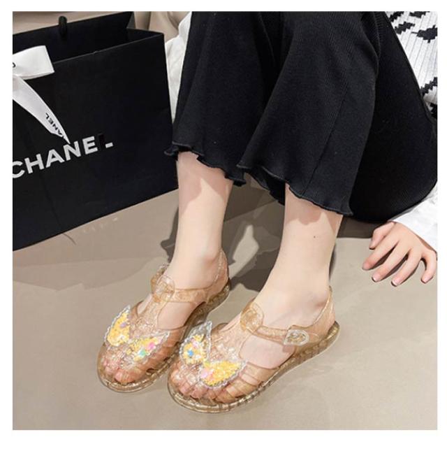 女の子 キラキラサンダル PVC素材 ガールズ キッズサンダル クリアサンダル つま先あり カジュアル キラキラ プリンセス靴 シューズ 女児 子供用 可愛い おしゃれ 入園 入学 夏 サマー