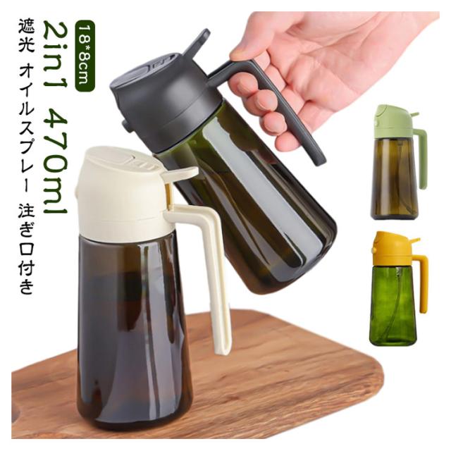 | オイルスプレー 2イン1 オリーブオイルディスペンサーは、キッチンでの調理をより便利にするアイテムです。 ガラス製のボトルは食品グレードで、安全に使用できます。 注ぎ口付きで、サラダやフライ、バーベキューなど、さまざまな料理にオイルを均一にスプレーできます。 470mlの容量で、頻繁に補充する手間を省きます。 シンプルでスタイリッシュなデザインは、どんなキッチンにもマッチし、使いやすさと美しさを兼ね備えています。 | |