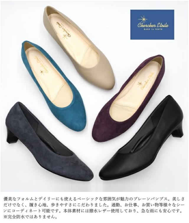 chercher ETOILE シェルシェエトワール はっ水 パンプス 日本製 本革 SP863 3E アーモンドトゥ スエード プレーンパンプス 4cm ヒール