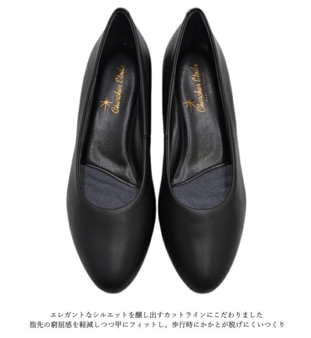 優美なフォルムとデイリーにも使えるベーシックな雰囲気が魅力のプレーンパンプス。美しさだけでなく、履き心地、歩きやすさにこだわりました。通勤、お仕事、お買い物等様々なシーンにコーディネート可能です。本体素材には撥水レザー使用しており、急な雨にも安心です。※完全防水ではありません。