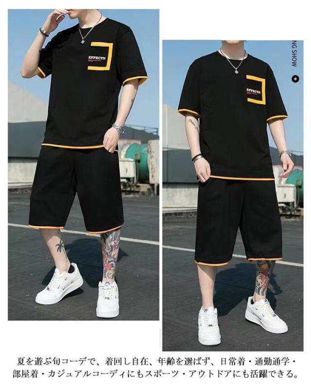 | 夏には欠かせない半袖tシャツ&ハーフパンツの上下セット! 柔らかい生地を採用し、肌触りも心地良い仕上がり、快適に着こなせます。 今年大活躍間違いなしのセットアップです。 上下別々で着てもお洒落に着こなします。 夏を遊ぶ旬コーデで、着回し自在、年齢を選ばず、日常着・通勤通学・部屋着・カジュアルコーディにもスポーツ・アウトドアにも活躍できる。 | |