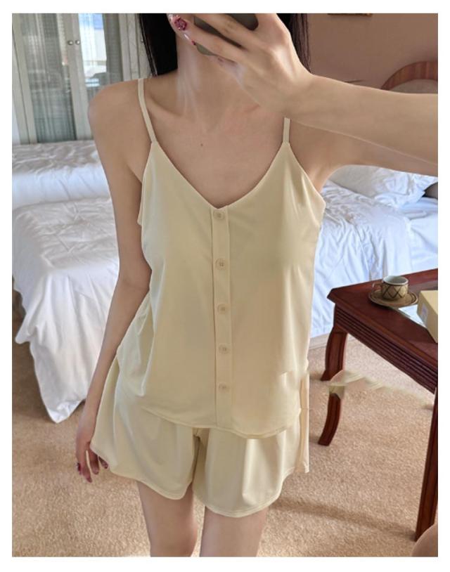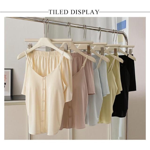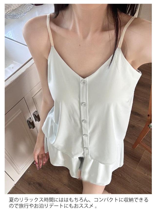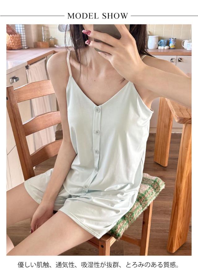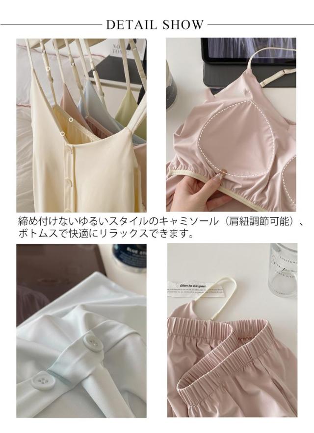 | キャミ+ショートパンツ・カップ付き・上下セットパジャマ 優しい肌触、通気性、吸湿性が抜群、とろみのある質感。 ふんわりソフトな肌触りと軽い着心地はお風呂上がりにも気持ちいい。 締め付けないゆるいスタイルのキャミソール(肩紐調節可能)、ボトムスで快適にリラックスできます。 夏のリラックス時間にははもちろん、コンパクトに収納できるので旅行やお泊りデートにもおススメ 。 | |