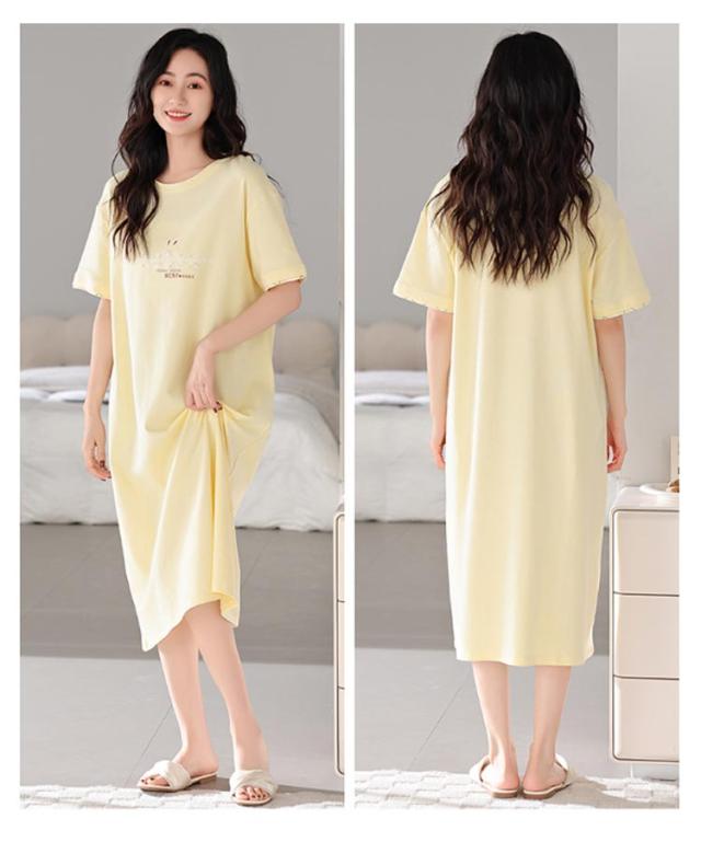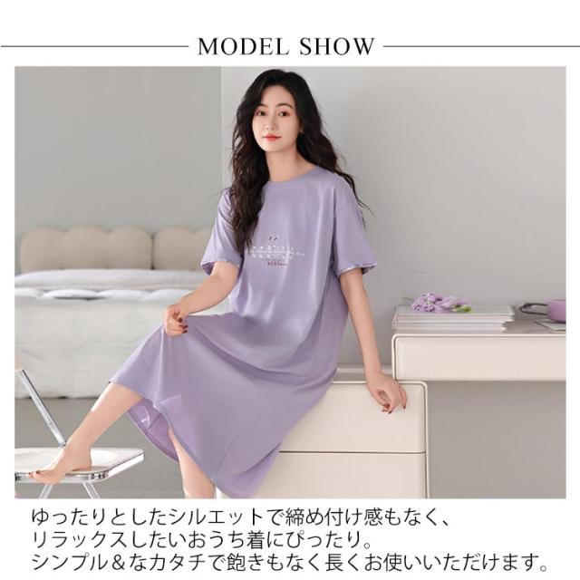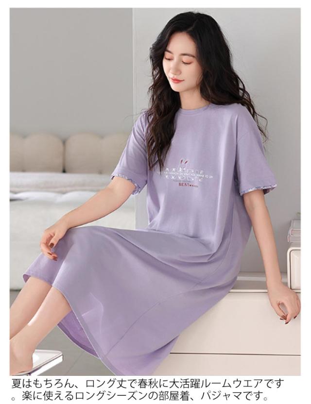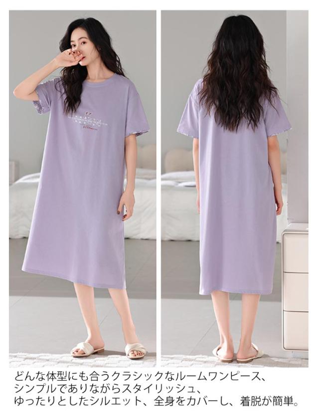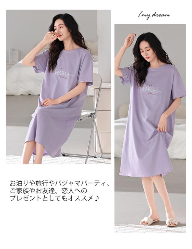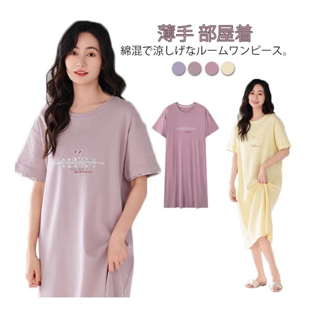 パジャマ ワンピース レディース ルームウェア ルームワンピ 女性 半袖 綿混 ゆったり 薄手 涼しい パジャマワンピース 無地 快適 ゆったり カジュアル ナイトウェア 部屋着 寝間着 夏服 ロング丈 ひざ下 送料無料