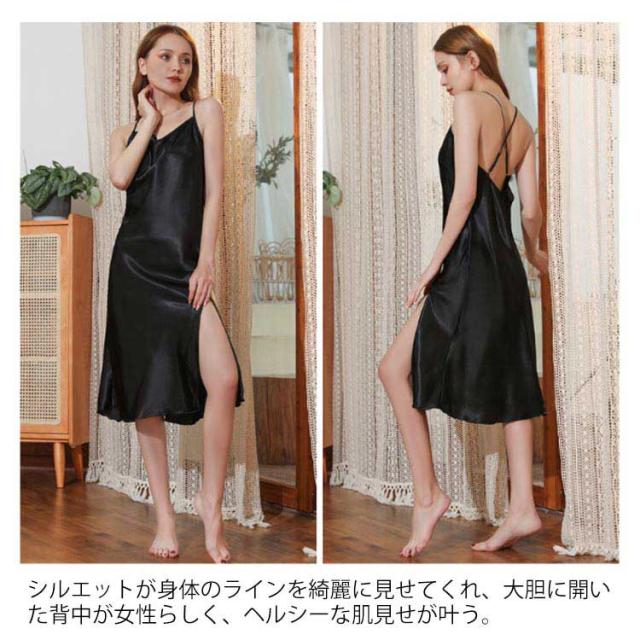 キャミソールワンピース ワンピース パジャマ レディース バックオープン 大人 セクシー ルームウェア Uネック サイドスリット マキシ丈 背中空き 夏 きれいめ ゆったり 大きいサイズ ストラップ調整可能 部屋着 送料無料