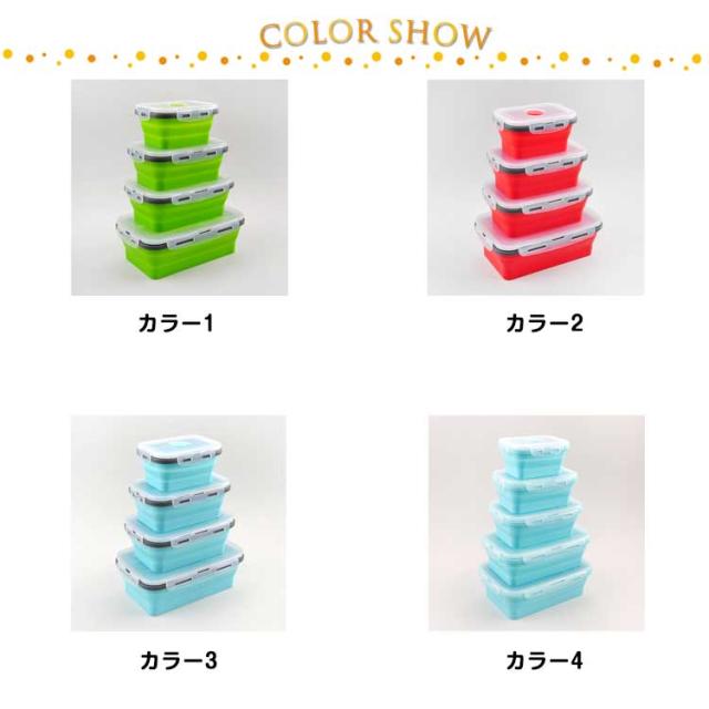 4個セット 折りたたみ 弁当箱 保存容器 調理&保存が可能 折りたたみ式 シリコン フードコンテナ 冷凍・電子レンジOK 密閉 密封 耐熱 漏れない ランチボックス お弁当箱 サステナブル キャンプ 行楽 運動会 コンパクト 350ml 500ml 800ml 1200ml