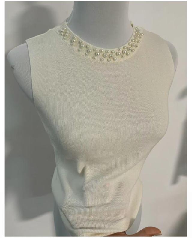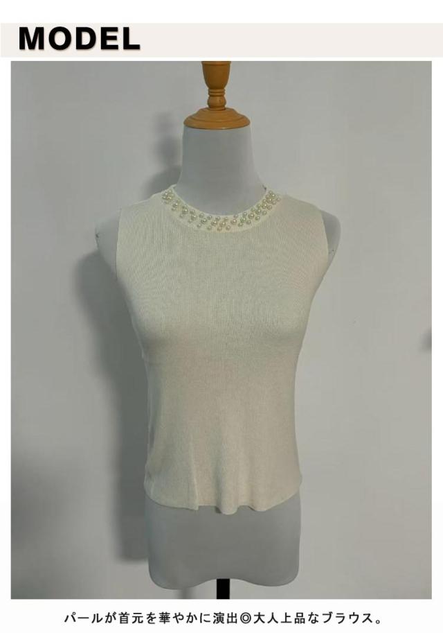 | 伸縮性のあるリブ生地だから着心地ダンクトップ♪ パールが首元を華やかに演出◎大人上品なブラウス。 トップスとしてだけでなく、優しい肌触りのインナーとしても着回しOK。 | |