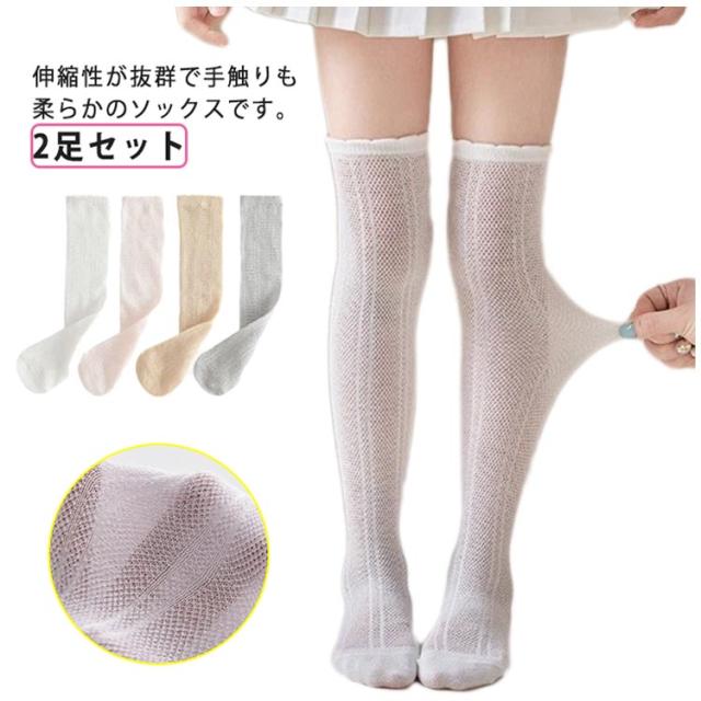 ニーハイ ハイソックス 虫よけ 2足セット ベビー 入園式 靴下 キッズ 通気 冷房対策 薄手 靴下 涼しい 女児 レース ジュニア サマーソックス 子供 ストッキング ストレッチ ハイソックス 制服用 女の子用 卒園式 入学式 卒業式