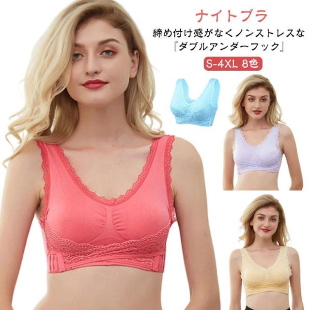 | 締め付け感がなくノンストレスな 『ダブルアンダーフック』 ナイトブラ S-4XL 8色 締め付け感がなくノンストレスの適度なホールド力! 『ダブルアンダーフック』で脇肉の流れを抑え、 寝ている間にバストをケアできるノンワイヤーナイトブラです。 『ダブルアンダーフック』が寝ている間もバストを支えるので「胸の横広がり」「ハミ肉」を防止しバストラインをキープ! 左右の下の部分からクロスして止めるので締め付けることなく適度にホールドできます。 肌あたりの柔らかな素材でお休み中もリラックスタイムもストレスフリーの優しい付け心地です。 脇下全体を包み込むので安心感のある設計。 脇肉の流れを防止しフロントもバックスタイルもスッキリきれい! 3段階ホックタイプなので、その日の体調や気分に合わせて、サイズ調整できます。 取り外し可能なパッド入り。薄手の服を着た時でも安心感があります。 伸縮性がある生地でふんわり優しいつけ心地。 サラッと乾きやすいので、汗をかくスポーツでのご使用にも最適です。 | |