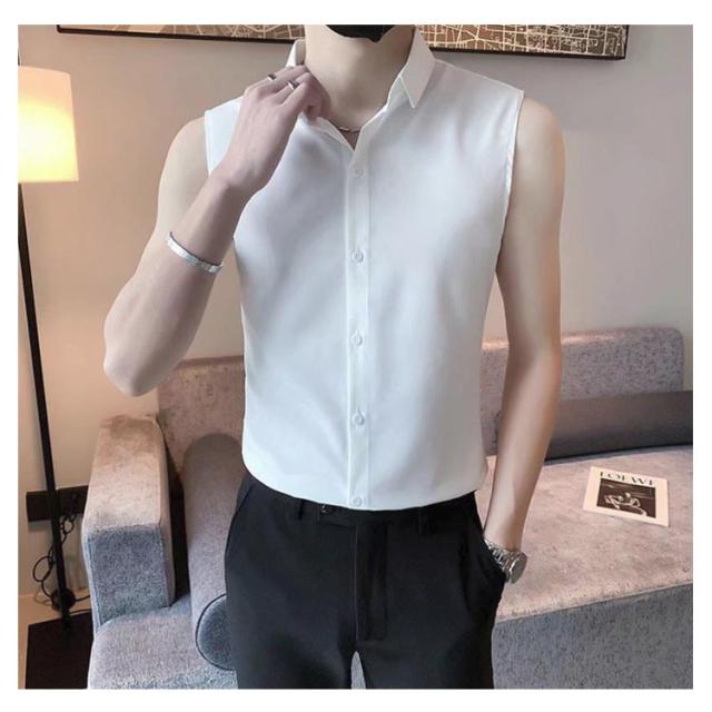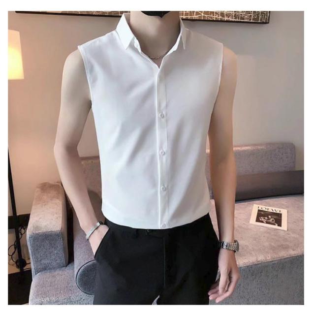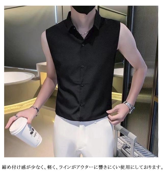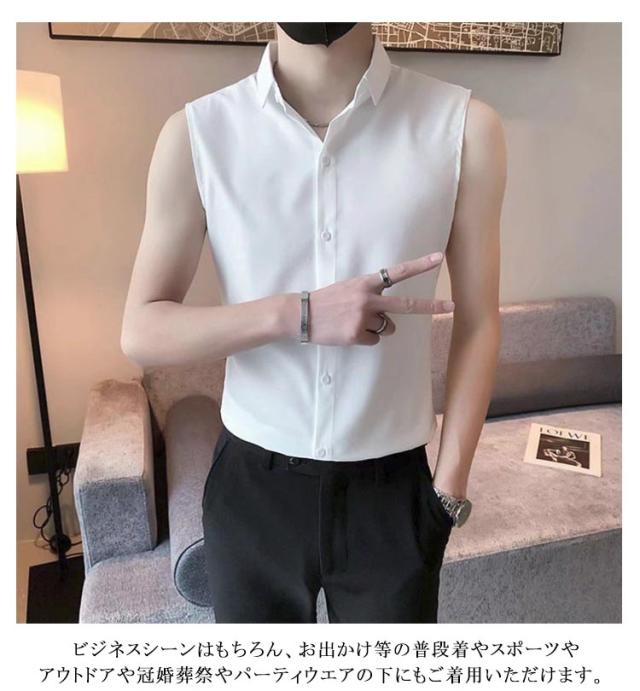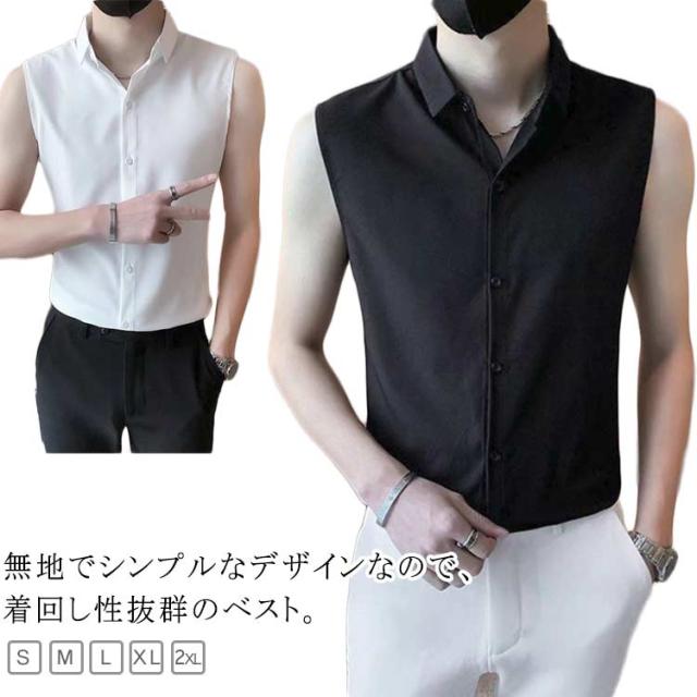 無地 肌着 カジュアルシャツ 襟付き ノースリーブ 前開き シャツ 袖なし トップス 接触冷感 メンズ ビジネス ボタンシャツ 羽織り ワイシャツ フォーマル XL 吸汗速乾 大きいサイズ ビジネス 学生 通勤 夏服 S M L シャツ 2XL 3XL