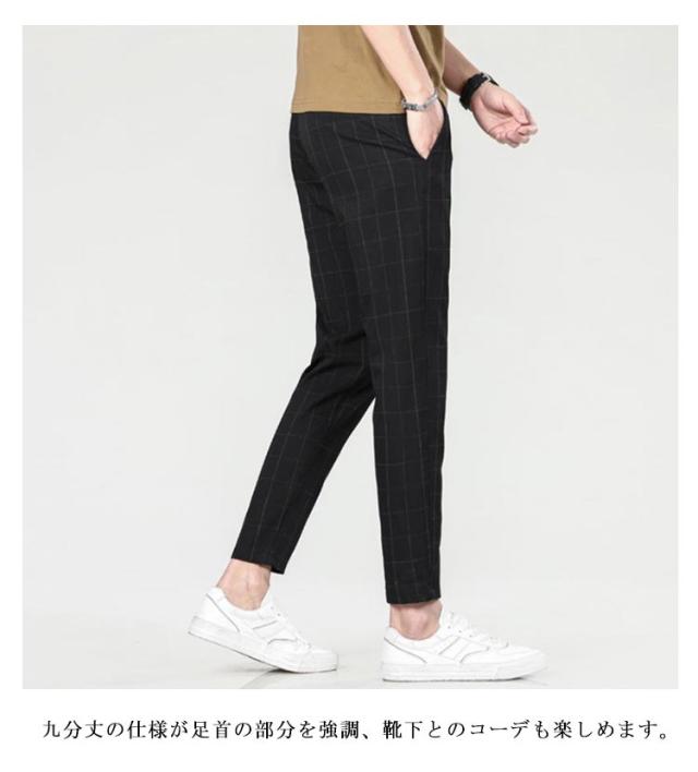 チェック リラックス 無地 九分丈 メンズ スラックス 夏 薄手 テーパードパンツ イージーパンツ 9分丈 アンクル丈 細身 スリムフィット スリム スキニーパンツ ストレートパンツ アンクルパンツ カジュアル ストリート系