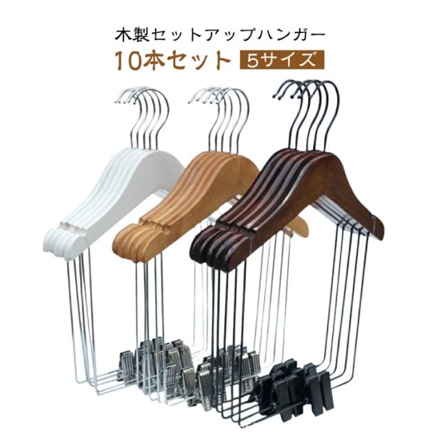 上下セット セットアップハンガー 子供 スーツハンガー 大人 【10本セット】木製 セットアップ用 パンツ ハンガー スーツ 洋服ハンガー ボトムス ジャケット スカート 同時収納 ハンガー クリップ付き 型崩れしない 収納ハンガー 衣類ハンガー キッズ用
