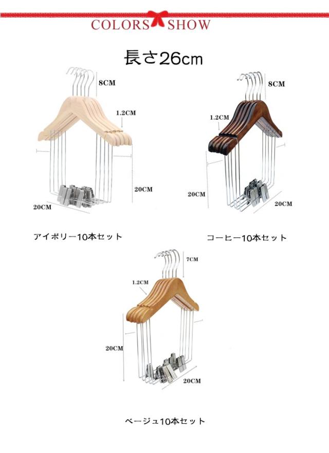 | 【10本セット】【木製セットアップハンガー】【5サイズ】 トップスとボトムスを同時に収納できる木製セットアップハンガー。 衣類の肩が型くずれしないように工夫を込めた木製ハンガー。 ぬくもりのあるウッド製で、頑丈でTシャツやライトアウターはもちろん、コートや厚手ズボンなども耐えられます。 お気に入りのコーディネートで収納したら忙しい朝の準備の時短に。 ジャケットとボトムスを合わせてかけられるのでスーツなどのセットアップにオススメです。 省スペースで収納ができるので収納が少ないおうちにもオススメ。 | |