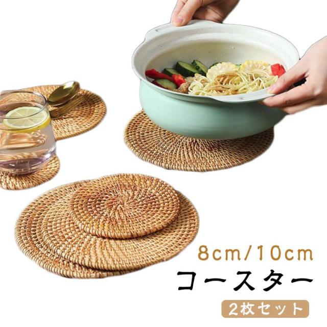 ランチョンマット 食器 耐久性 編み インテリア 手編み 8cm 2枚セット コースター 小物置き 10cm カビ防止 木製 藤 耐熱性 放熱性 ビジネス 高級感 大人気 滑り止め コースター 工芸品 伝統的