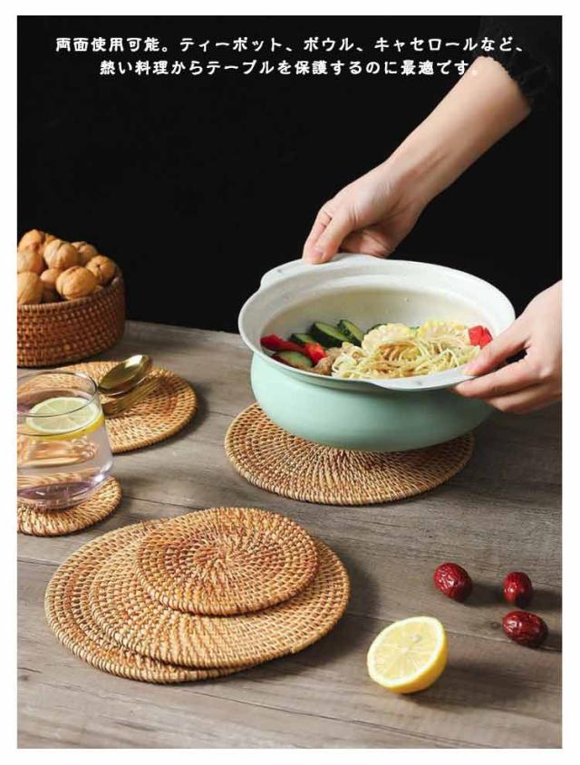 | 2枚セット 8cm/10cm コースター 両面使用可能。お椀やカップに使えるやや小さめのサイズ感。 0.75CMの厚さは耐熱性と耐久性がもっと強いです。 藤で編んで、美しい形をしており、キッチンに優雅さを加え、表面を熱から保護し、滑りを防ぎます。 日常のクリーニングにするときは、柔らかい布で拭くことも洗濯乾燥することもできます。 ★:湿った場所への長時間の放置はご遠慮願います。 | |