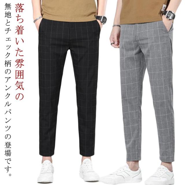 薄手 テーパードパンツ 九分丈 メンズ 無地 スリム 夏 アンクル丈 アンクルパンツ イージーパンツ 9分丈 チェック 細身 スリムフィット スラックス スキニーパンツ ストレートパンツ リラックス カジュアル ストリート系