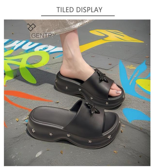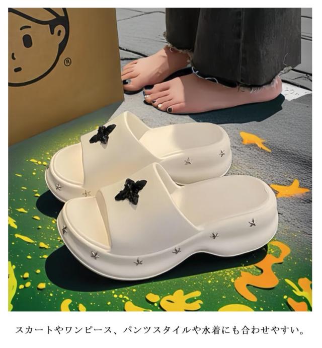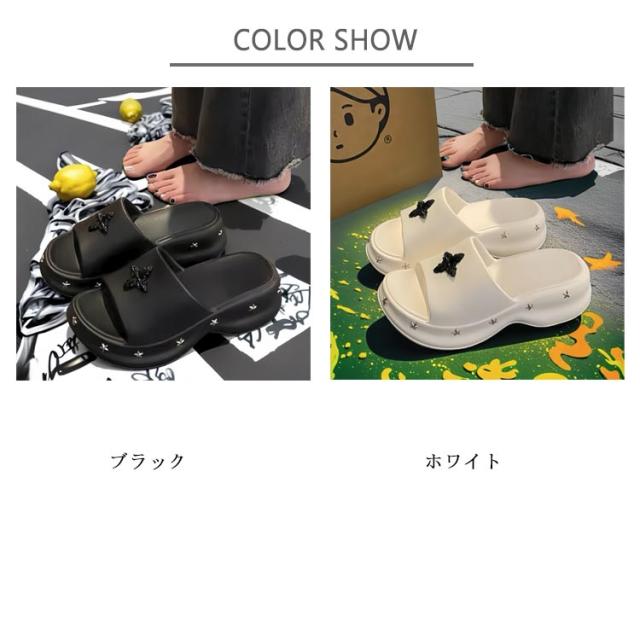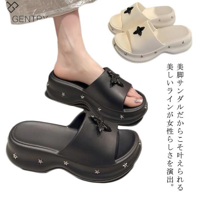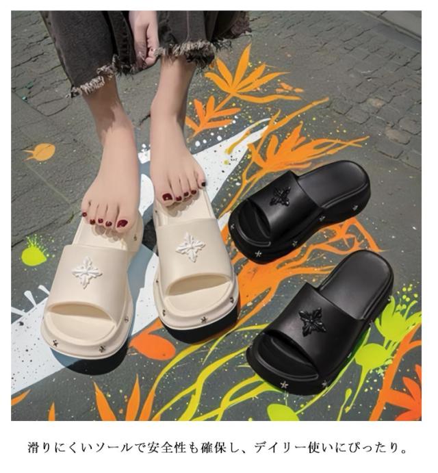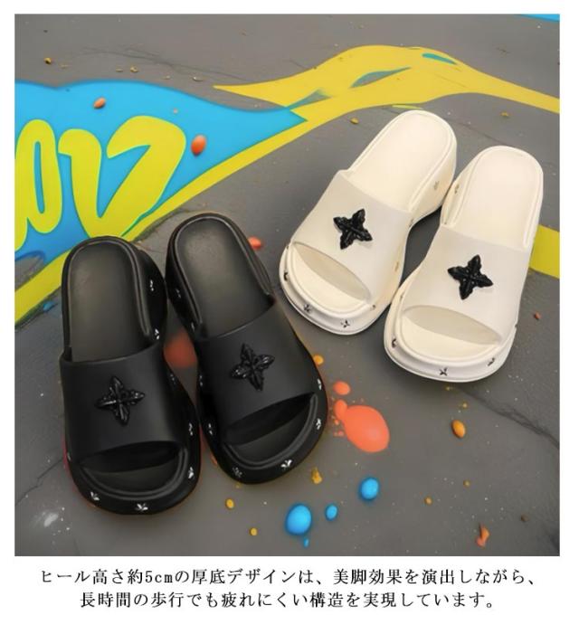 スリッパ レディース 美脚 軽量 夏 人気 おしゃれ シューズ 星柄 サンダル 厚底 歩きやすい ヒール 靴 かわいい 厚底サンダル 通気性 シンプル ファッション 厚底 ブラック 洗える お風呂 ルームシューズ