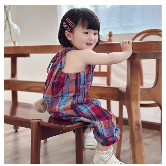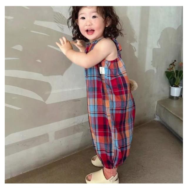 サロペット かわいい サロペット オーバーオール 子供服 チェック 赤ちゃん オールインワン サロペット 男の子 女の子 しっぽ付き キッズ キャミソール 夏用 パンツ シンプル カジュアル カバーオール インスタ映え 記念写真 文化祭 撮影