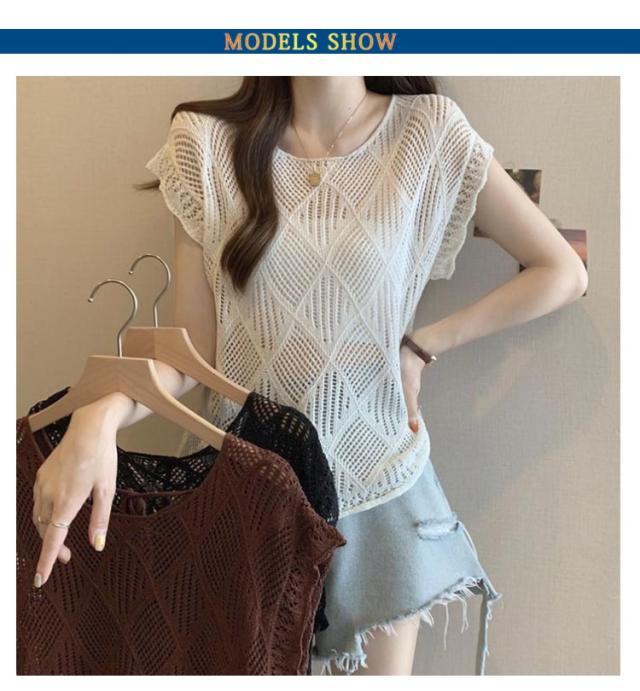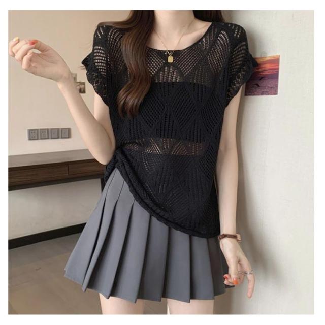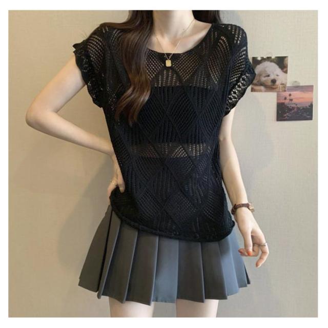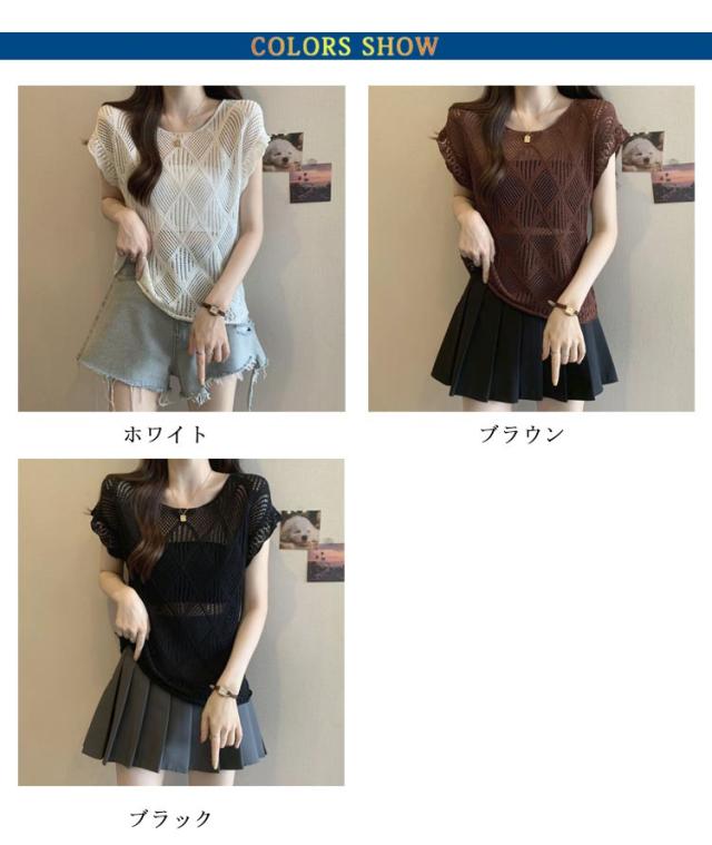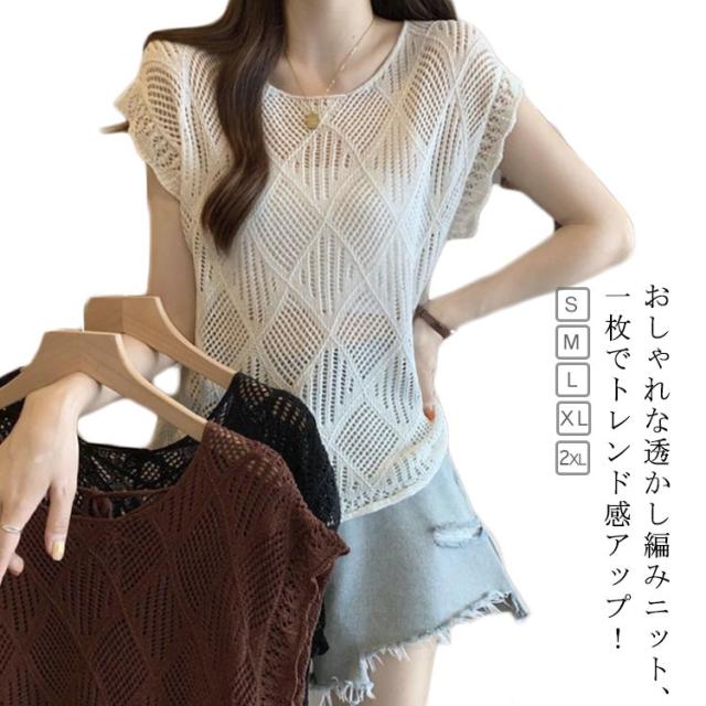 メッシュ 夏 半袖 tシャツ トップス プルオーバー 透かし編み シアーニット 重ね着 レディース カットソー レイヤード 大きいサイズ 無地 シンプル サマーニット デート