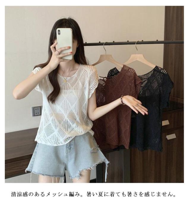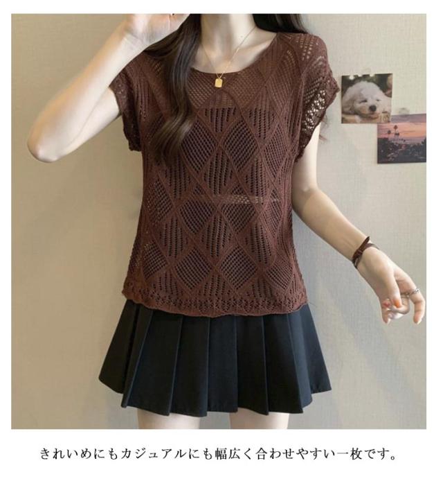 | おしゃれな透かし編みニット、一枚でトレンド感アップ! 清涼感のあるメッシュ編み。暑い夏に着ても暑さを感じません。 程よい透け感が大人の女性を演出。 きれいめにもカジュアルにも幅広く合わせやすい一枚です。 | |