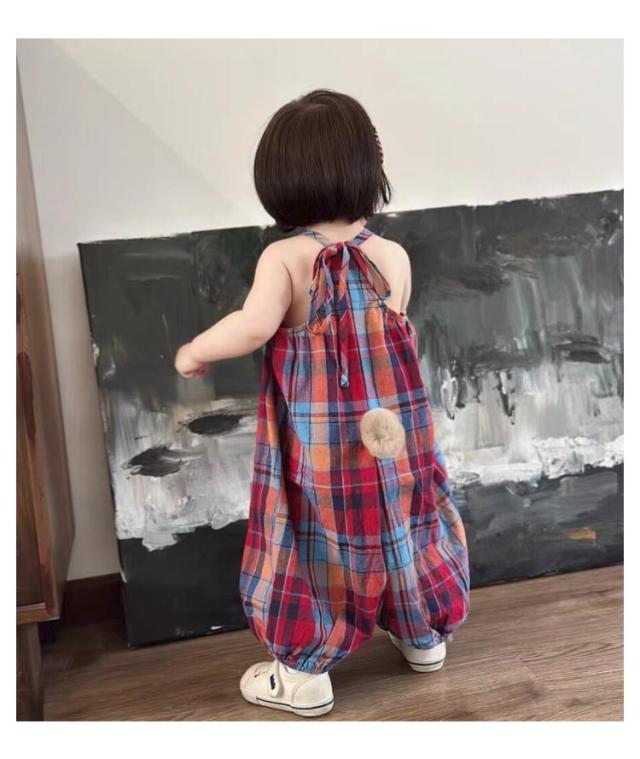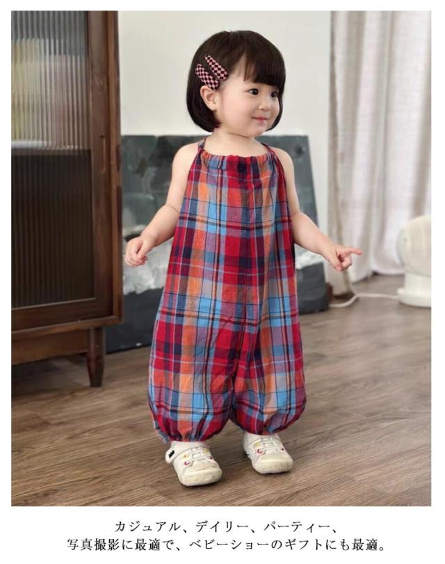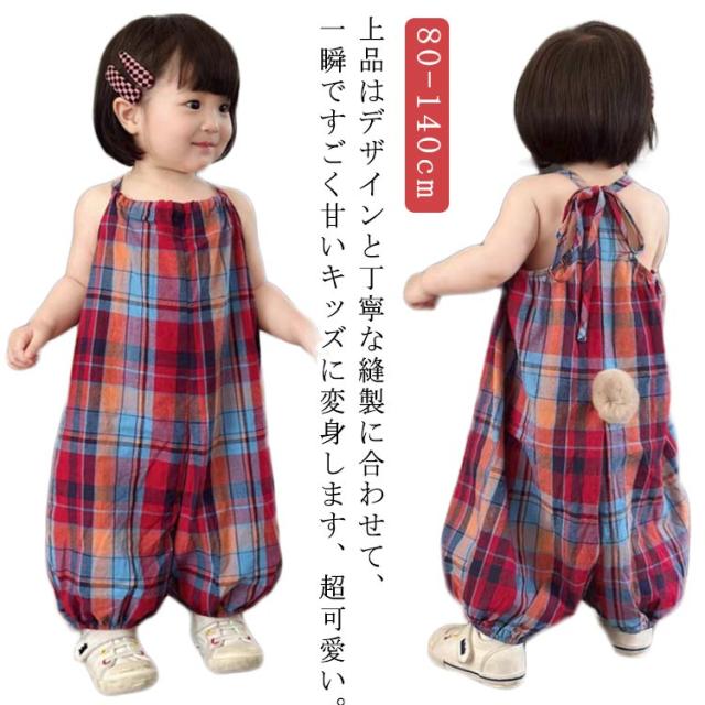 男の子 女の子 しっぽ付き 子供服 サロペット キッズ 赤ちゃん サロペット サロペット キャミソール 女の子 オールインワン かわいい カバーオール 夏用 パンツ シンプル チェック カジュアル インスタ映え 記念写真 文化祭 撮影