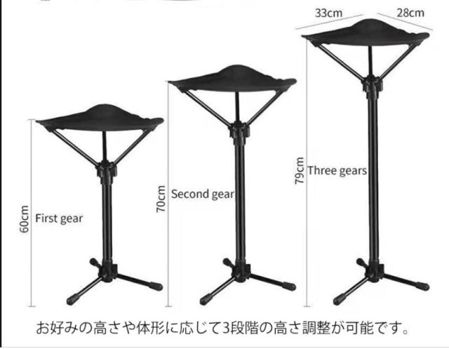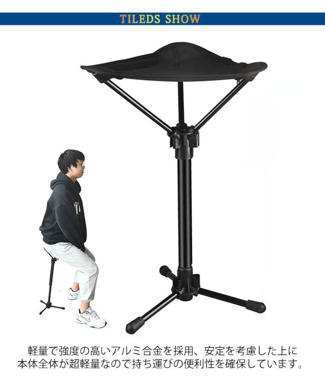 アウトドアチェア 折りたたみ 椅子 チェア モバイルチェア ポケットイス 軽量 コンパクト アウトドアチェア 3本脚 スタンディングチェア 高さ調整 アウトドア 折りたたみ椅子 キャンプ椅子 行列待ち スポーツ観戦 フェス