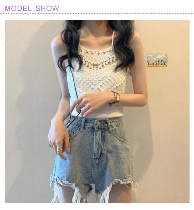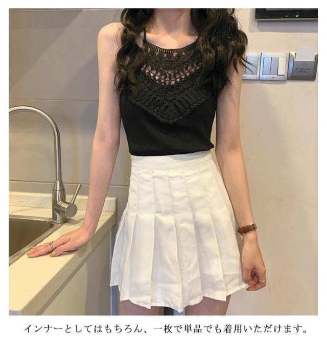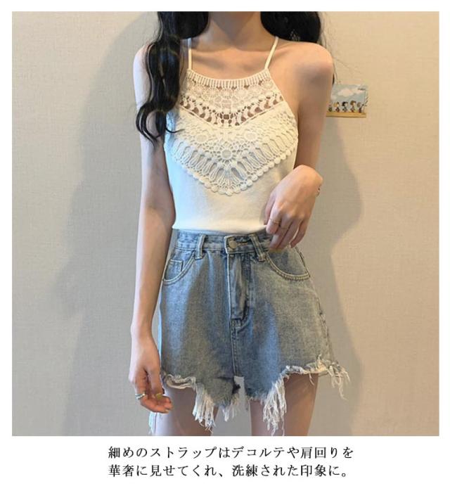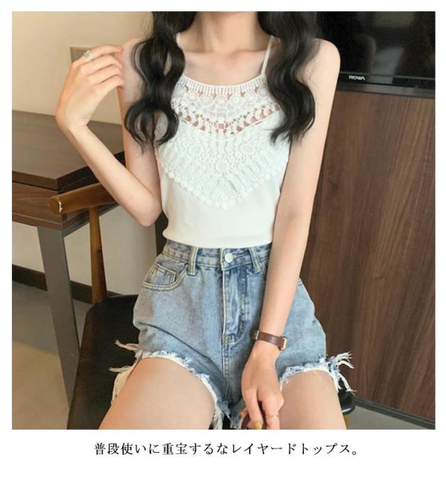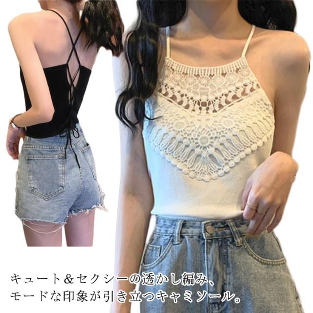 透かし編み レディース レースアップ へそ出し シンプル キャミソール 下着 インナー ショート丈 キャミ ショートキャミ 重ね着 トップス パット無し レイヤード カップなし エスニック ナチュラル