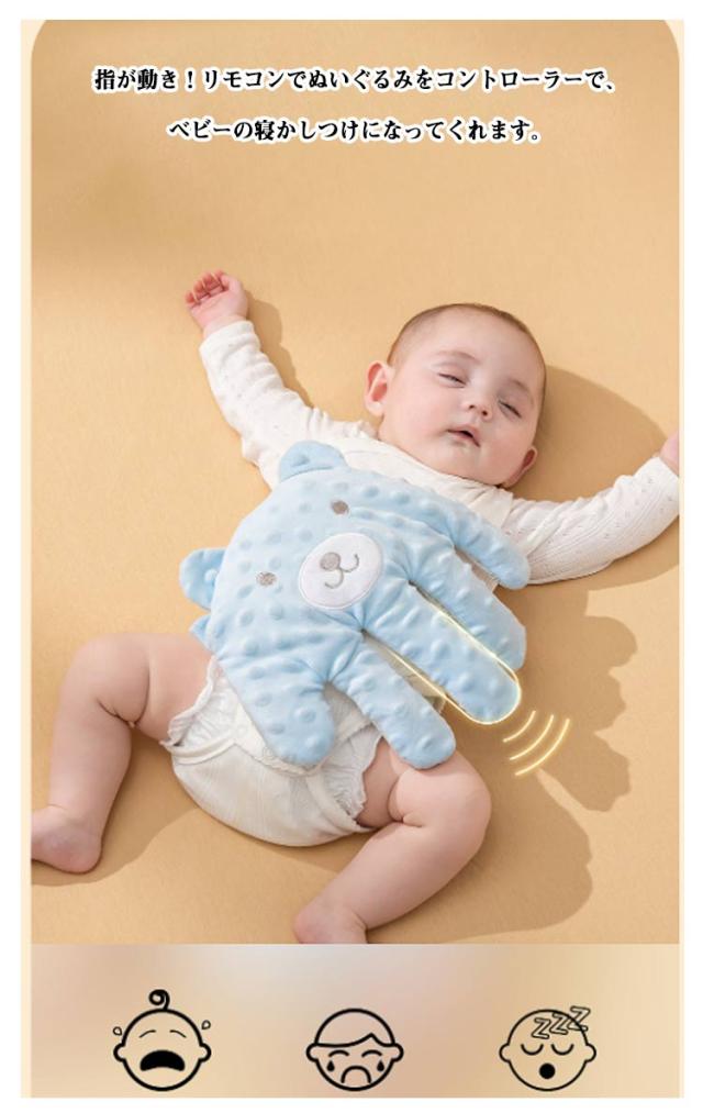 | 指が動き!リモコン付き!赤ちゃん寝かしつけ用電動式ぬいぐるみ。 カバー外し可能! 寝ている時に赤ちゃんに手の触るような安心感を与えます。 指が動き!リモコンでぬいぐるみをコントローラーで、ベビーの寝かしつけになってくれます。 カバー外し可能!洗濯機で洗濯可能だからいつでも清潔に保つことができます。 ※ご注意:充填のインナーだけ加熱できます、カバーを外して加熱ください。 電子レンジ中火で1分間ぐらい。 | |