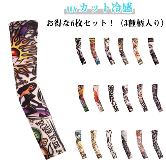 アームカバー 【6枚入】タトゥースリーブ 腕カバー タトゥー 【6枚入】タトゥースリーブ 肘サポーター 入墨 uvカット 紫外線対策 アーム 男性 コスプレ 刺青 仮装 防犯用 入れ墨 オシャレ メンズ レディース タトゥーアームカバー アームスリーブ カバー 冷感 夏用 刺青