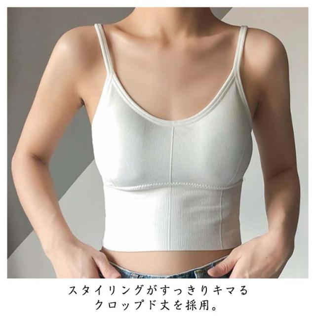 | ノンワイヤー仕様のカップ付きキャミソール スタイリングがすっきりキマるクロップド丈を採用。 背中が大きく開いたバックオープンタイプで背中店スタイルもばっちり! 様々なコーデで活躍します。 | |