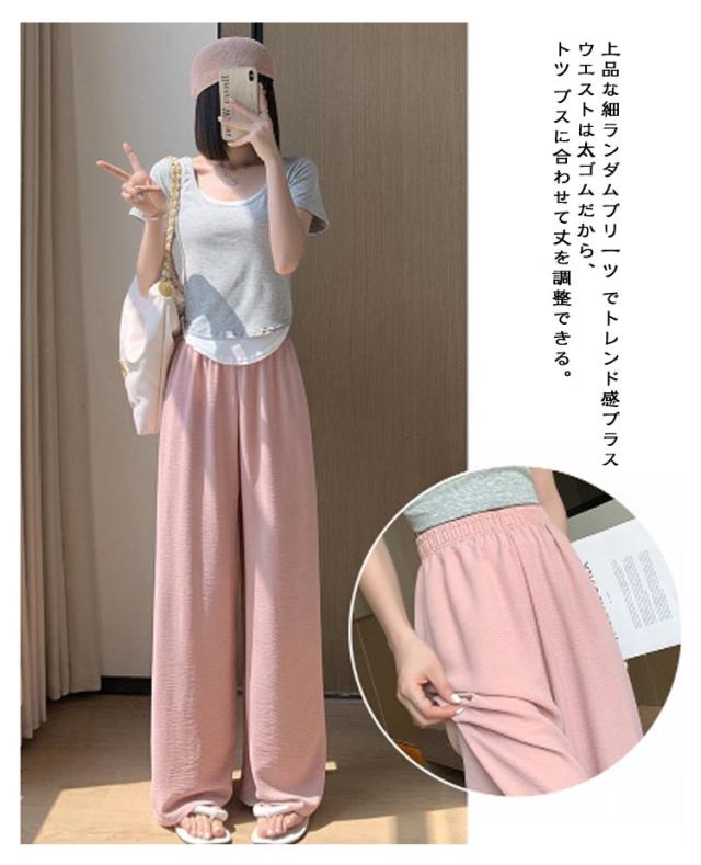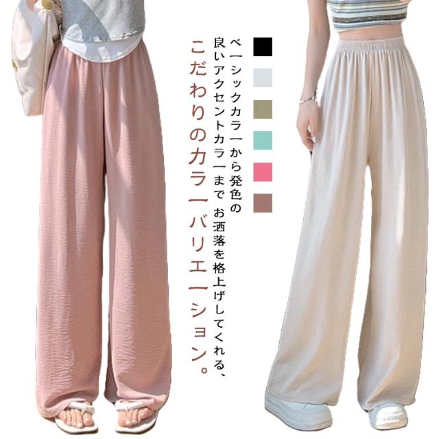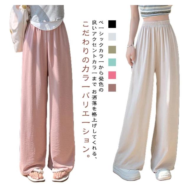 パンツ ワイドパンツ 柔らかい 涼感 夏 ボトムス 春 イージーパンツ 楽ちん ゆると レディース ロング 無地 ワイドパンツ レディース 夏 涼感素材 接触冷感 楽ちん おしゃれ 大きいサイズ