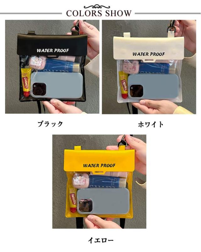 | 貴重品やよく使うものをまとめて持ち運べる便利な防水ポーチ。 スマホ、鍵、財布、パスポート、ヘッドホンまで収納できる大容量◎ IPX8等級の完全防水スマホケース水深30メートルまでの潜行に対応します。 高品質PVC素材でクリアな質感とそのままスマホー操作ができます。 取り外し可能なショルダーストラップ付き。ショルダーバッグのように肩掛け・斜めがけをすれば両手があいて、よりアクティブに行動ができます。 スポーツ、レジャー、フェスなどにあったらとても便利なアイテムです♪ | |