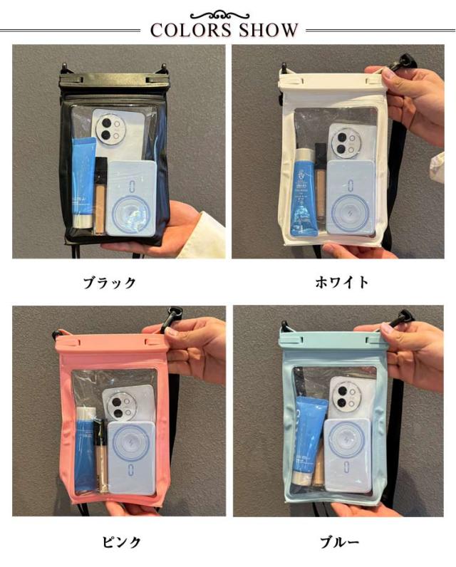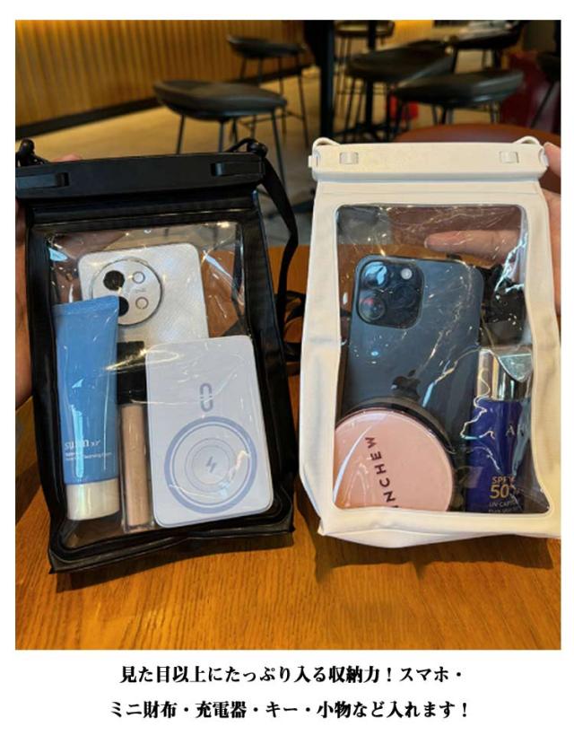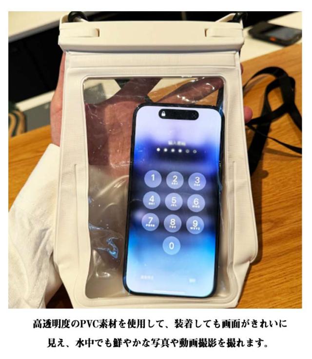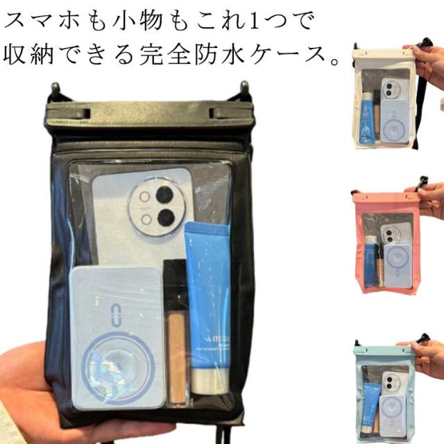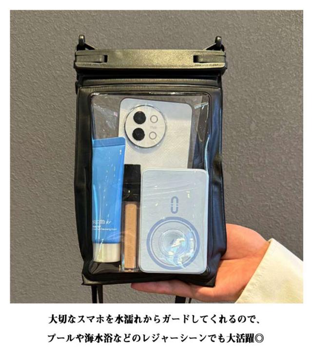 | スマホも小物もこれ1つで収納できる完全防水ケース。 大切なスマホを全方位から護る信頼のパートナー。 スマホ、鍵、財布、パスポート、ヘッドホンまで収納できる大容量◎ 高品質PVC素材で、クリアな質感とそのままスマホー操作ができます。 取り外し可能なショルダーストラップ付き。ショルダーバッグのように肩掛け・斜めがけをすれば両手があいて、よりアクティブに行動ができます。 アウトドアやレジャー、ゲリラ豪雨対策に!キッチンやお風呂でも重宝。 | |