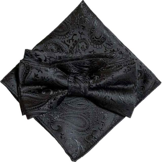 ブラックペイズリー 【蝶ネクタイ&ポケットチーフ】2点セット メンズ ワンタッチ カジュアル フォーマル 黒