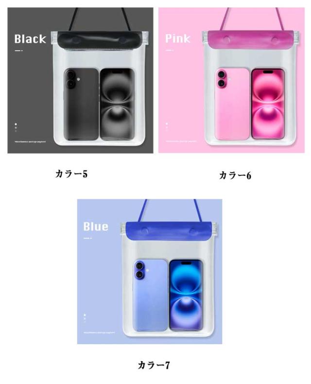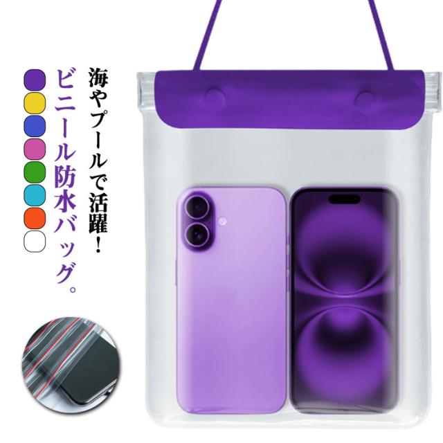 | 貴重品やよく使うものをまとめて持ち運べる便利な防水バッグ。 見た目以上にたっぷり入る収納力!スマホ・ミニ財布・充電器・キー・小物など入れます! 高品質PVC素材でクリアな質感とそのままスマホー操作ができます。 大容量サイズでビーチ、温泉、ウォーターパークなどで大活躍のアイテムです。 自分サイズに調節できるショルダーストラップ付きで、身軽に携帯。 水以外にも砂や雪などもしっかりガード、あなた次第で利用シーン広がる♪ 男女問わずお使いたいだけるシンプルなデザインと豊富なカラー! | |