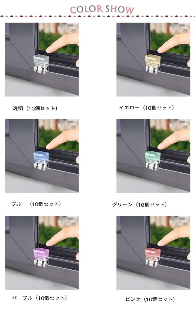 | 色 | 透明(10個セット) イエロー(10個セット) ブルー(10個セット) グリーン(10個セット) パープル(10個セット) ピンク(10個セット) |